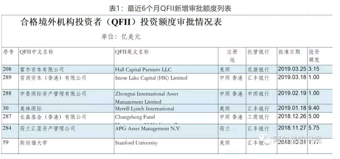 2. QFII最近半年新增审批额度仅27.07亿美元